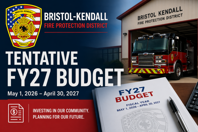 On behalf of the Board of Trustees, the Board of Fire Commissioners, and the men and women of the Bristol Kendall Fire Protection District, thank you for taking the time to visit our website. The Fire District protects the majority of the Bristol and Kendall Townships which is approximately 77 square miles.